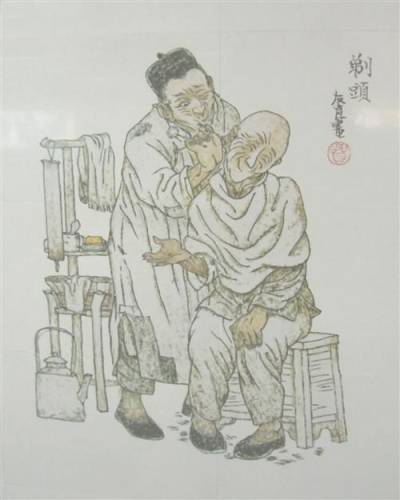 《十尾龟》:1.吃过早点,就叫剃头司务梳了一条辫。2.次日又叫当差的传了一班裁缝司务来,把剪来的缎绸各料交代裁缝。